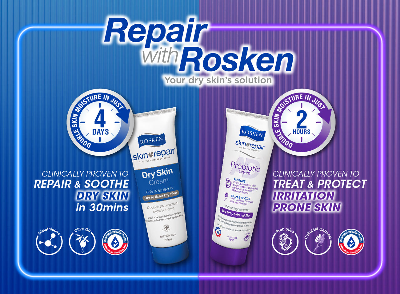 Sold: 100Rosken AD Probiotic Cream 75ml | Treat and Protect Dry Skin