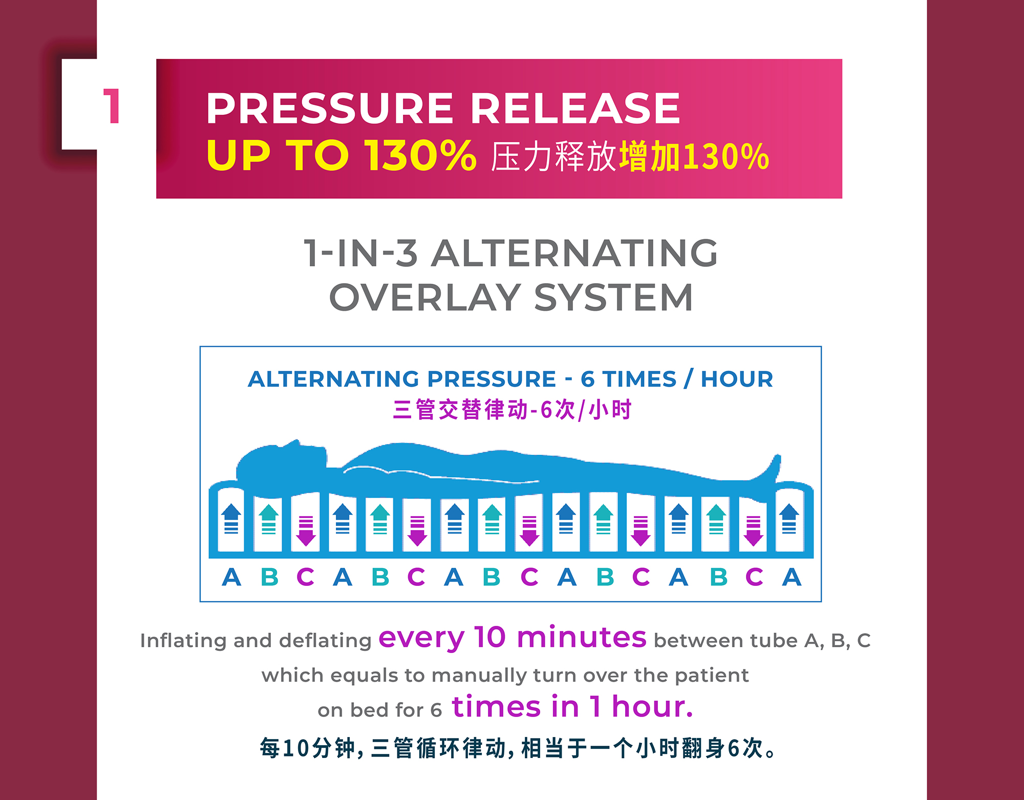By having a series of individual cells inflate and deflate alternatively cycles, the pressure is periodically redistributed. This is to mimic natural sleep movement patterns and avoid long term pressurization of tissue.