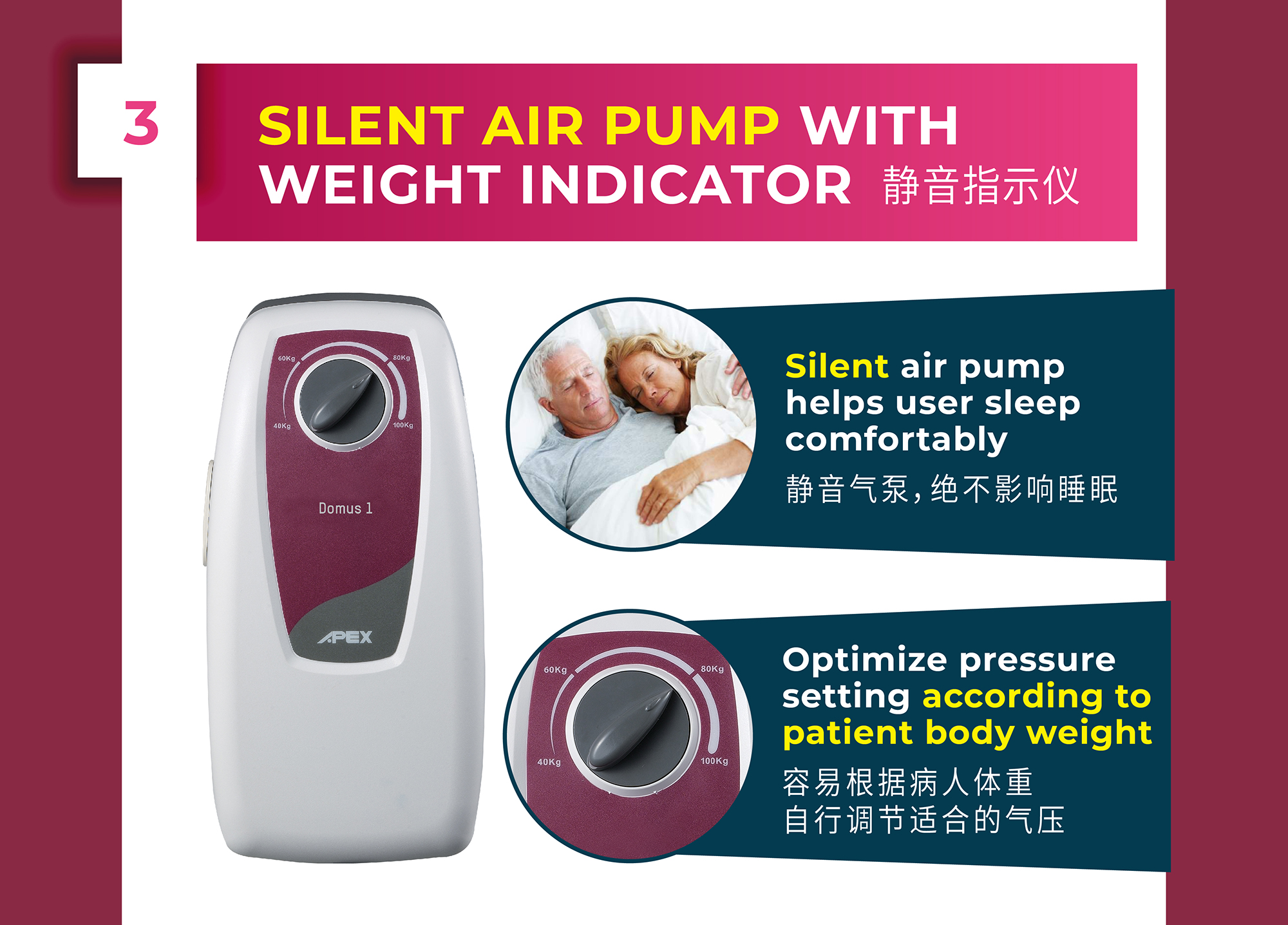3) Thirdly, it has silent air pump with weight indicator reference.